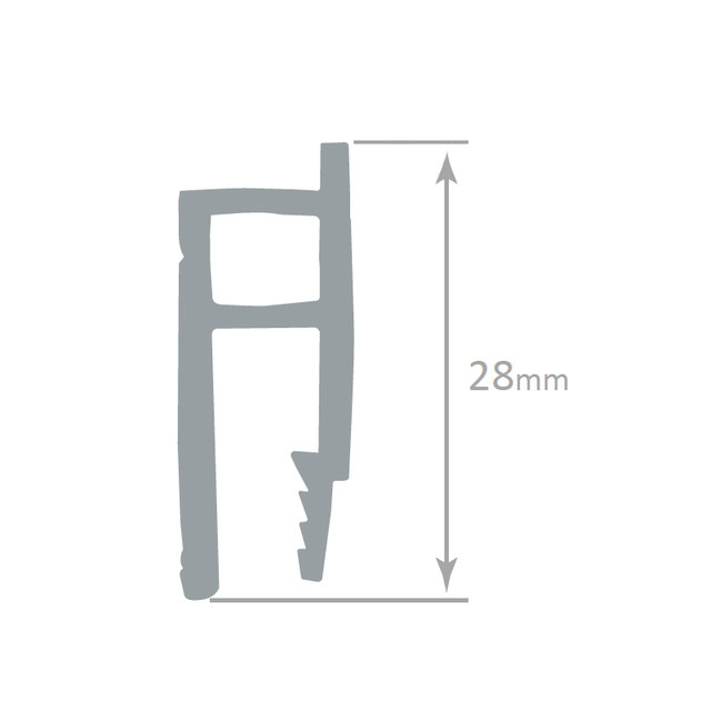 Довжина профілю 2.5 м. Пластиковий профіль для натяжних потолків кріпиться по периметру приміщення, утримуючи пвх плівку, утворюючи таким чином конструкцію, яка і називається натяжним потолком. Застосовується для кріплення полотна натяжного стелі до стіни та будь-яких вертикальних плоскостей. У конструкції профілю є додаткова канавка для фіксації саморіза та зубці для кріплення стрічки, що маскує.
